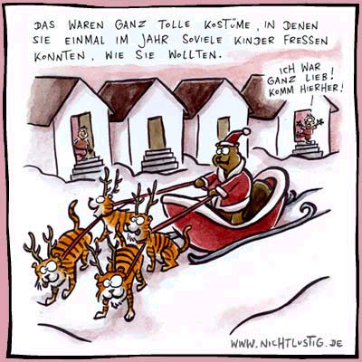 had a very shiny nose. Let me tell you a secret; it's from a drug overdose! All of the other Reindeer used to laugh and call him names. That is what drove poor Rudolph to escape into Coccaine. Then one foggy Christmas Eve Santa came to say, "Rudolph, we know what you've done." The police came and took him away. Now all the Reindeer are straight; they've given up PCP, quaaludes, and marijuana, and flying high on LSD. |